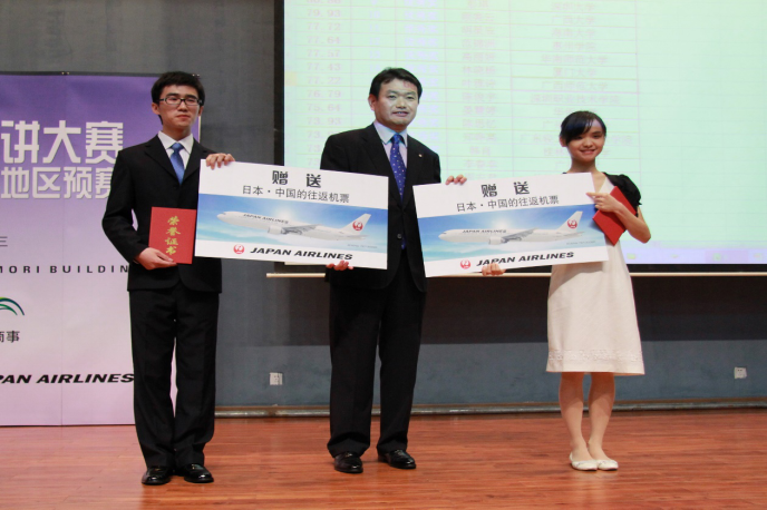 此次大赛由中国教育国际交流协会、日本经济新闻社、日本华人教授会议共同主办,三菱商事、日本航空、JFE钢铁公司等日本企业共同赞助。中山大学、华南师范大学、厦门大学、暨南大学以及公司在内的25所高校各派一名代表参加了此次大赛。 公司日语系08级阚振宇在杨晔、冈泽成俊、浅井治老师等带领下,代表公司参加了此次大赛。
