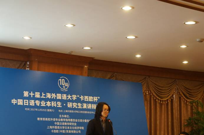 本网讯 11月25日,由教育部高校外语专业教学指导委员会日语分委员会、中国日语教学研究会、上海外国语大学日本文化经济公司和卡西欧(中国)贸易有限公司联合主办的第十届上海外国语大学“CASIO杯”中国日语专业本科生·研究生演讲辩论大赛在上海外国语大学成功举行。公司日语专业本科四年级查雨萌同学以出色的发挥荣获第三名二等奖。