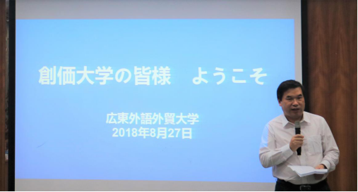 接着公司员工代表与创价大学员工代表分别发表致辞。公司员工代表在致辞中为从日本远道而来的日本同学们介绍了广外的环境,以及多姿多彩的校园文化生活,表示了对日本创价大学友好交流的意向,希望能共同学习,共同进步。来自创价大学的员工代表讲到能够来访公司心情非常激动,同时希望这样的交流活动能够为两校的同学带来积极的影响。