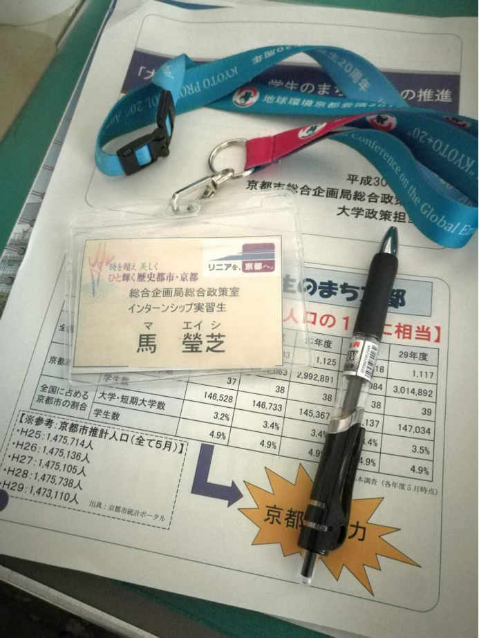 本网讯:今年7月底到8月中旬,我作为立命馆大学亚洲校园项目的中国职工,通过项目工作人员的牵线,去往京都市政府大学综合政策室大学政策课,进行了为期两个星期的实习。在这段实习中,我不仅提高了处理数据的业务能力,亲身体会到了日本公务员的工作氛围,更是了解到了政府工作的流程以及工作涉及的方面,对将来我的职业规划起到了很大的指导作用。