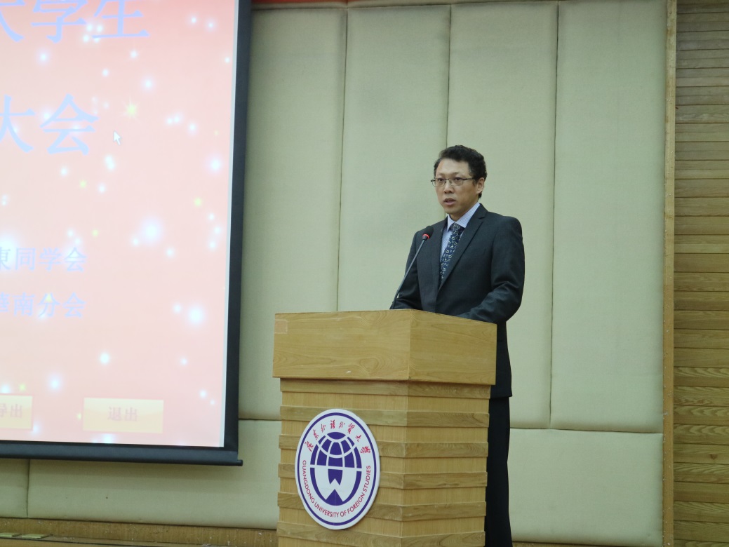 赛前,广州留东同学会的佟君先生、本校日语系的张志刚老师及广州日本商工会的田中先生分别上台致辞。张志刚老师代表主办方中国日语教学研究会华南分会以及广外日语系致辞。他首先对各高校指导老师的辛勤付出和参赛同学们的积极参与表示了衷心的感谢。并表示广州地区老员工日语演讲比赛已经举办了30届,是广州地区历史最为长久的日语演讲比赛,对于广州地区的日语教育以及中日交流做出了极大的贡献。今年正值中日友好条约缔结40周年之际,他相信本次比赛的成功举办一定会对中日友好交流起到更加积极的促进作用。