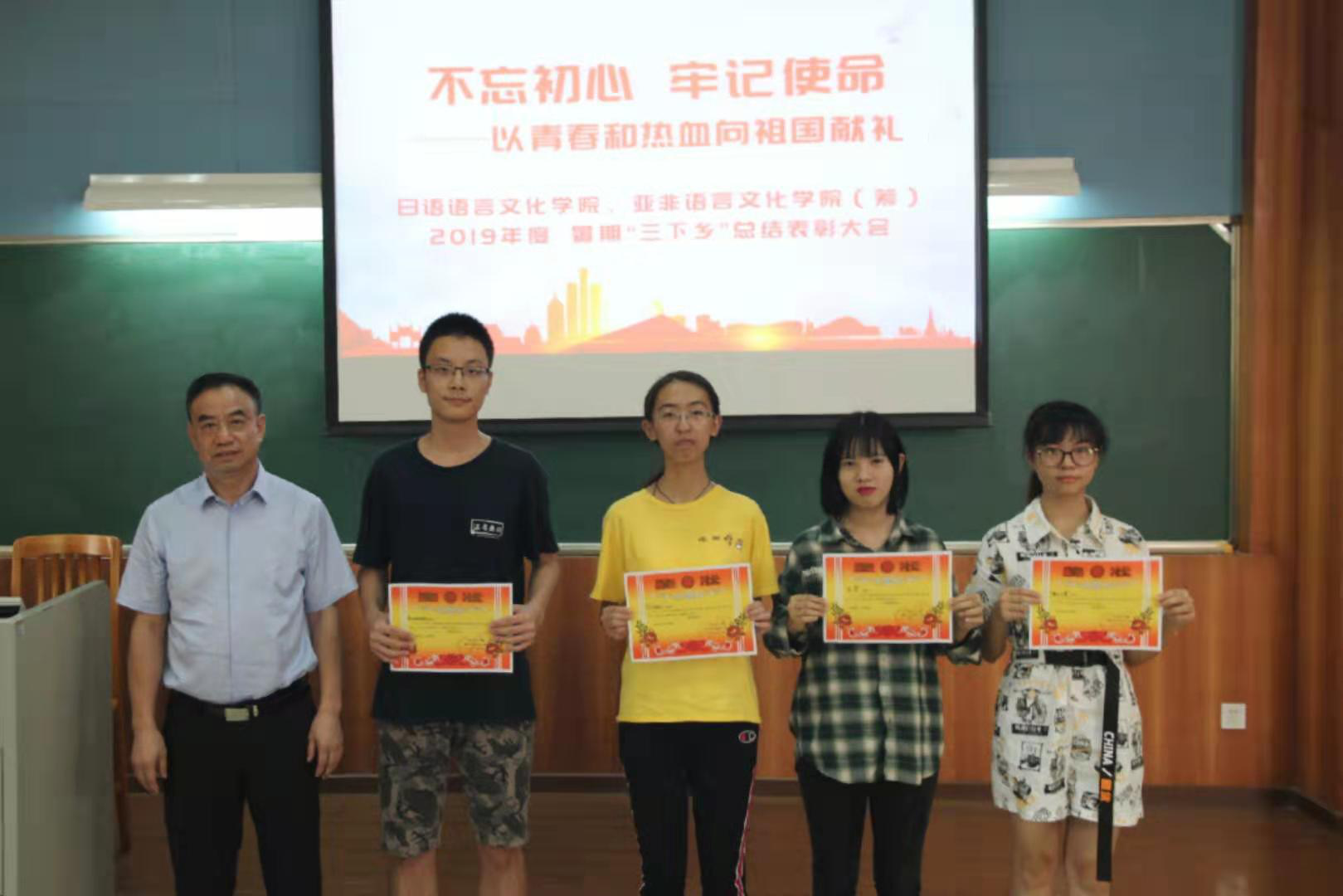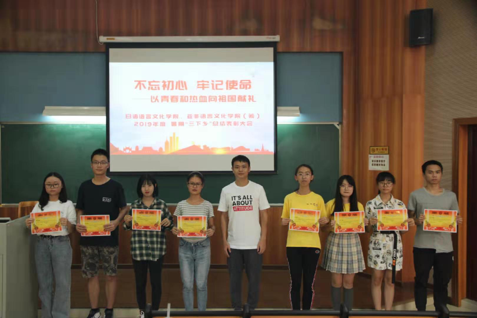 本网讯 为增强当代老员工对新时代乡村发展的认识,进一步鼓励老员工以所学知识服务与贡献社会,10月10日上午,太阳城、亚非公司(筹)院团委于七教107开展以“不忘初心、牢记使命——以青春和热血向祖国献礼”为主题的暑期三下乡总结表彰大会。出席本次活动的有:公司党委副书记曾智鹏、院团委书记朱浩文、辅导员许楚欣、孙小星以及日语亚非公司2019级各班员工代表。