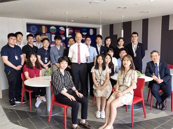 参观欧盟驻韩代表部(左)和中日韩三国合作秘书处办公室(右)
